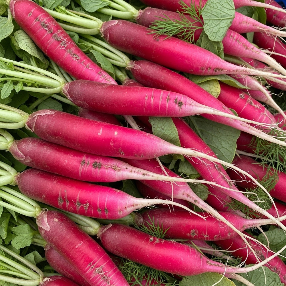 Full Red Radish is a fast-growing, high-yielding vegetable variety known for its crisp, juicy, and bright red roots. These radishes have a mild and slightly peppery flavor, making them perfect for salads, garnishes, pickles, and culinary dishes.